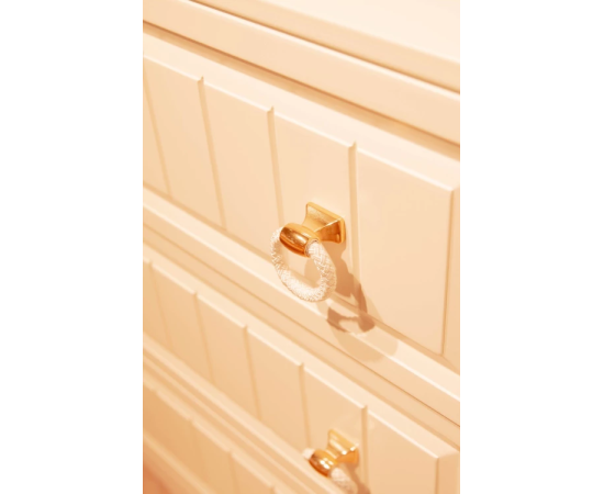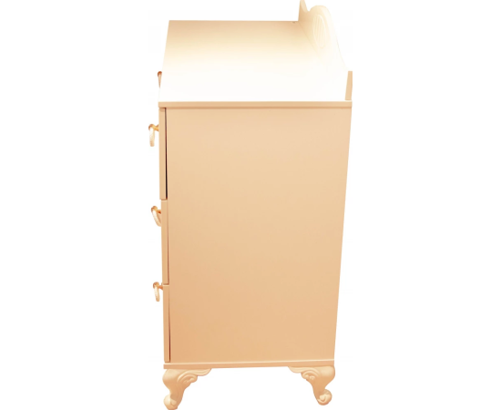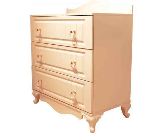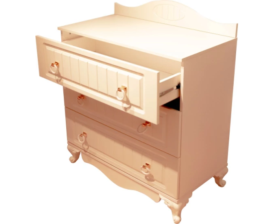 Комод "Lotus" изготовлен из качественного и долговечного материала. Фасады выполнены из МДФ, корпус ЛДСП. Все углы безопасны. Дерево покрыто безопасным лаковым покрытием, которое защищает от различных повреждений и позволяет надолго сохранить внешний вид изделия. Имеются ящики на направляющих, которые легко выдвигаются и очень вместительны. Комод декорирован изящными ручками. Колеса отсутствуют.