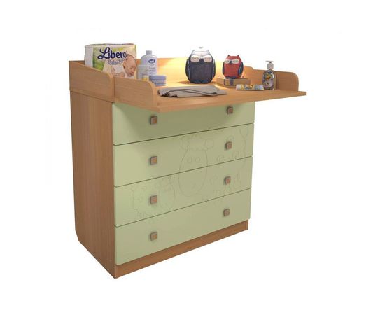 В комоде удобно хранить все детские принадлежности: детские вещи, игрушки, постельное белье, подгузники, крема, присыпки. Детский пеленальный комод выполняет функцию пеленального столика и отлично помогает в переодевании ребенка на прогулку и после, а также массаж.