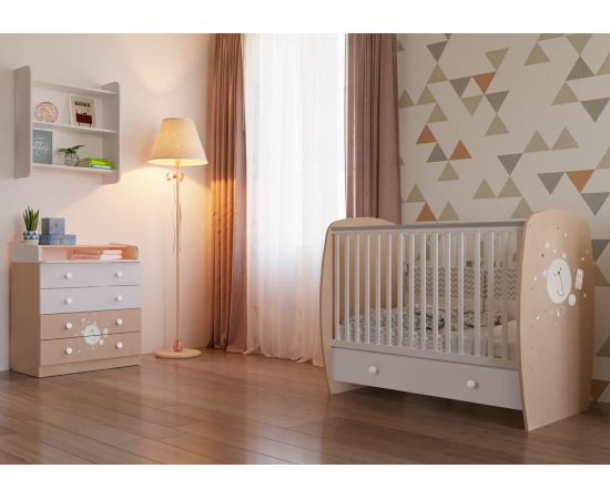 Пеленальный комод незаменимый предмет детской мебели. Модель максимально функциональна: совмещает в себе комод и пеленальный столик. В комоде удобно хранить все детские принадлежности: детские вещи, игрушки, постельное белье, подгузники, крема, присыпки. Высочайший уровень безопасности продукции: ЛДСП Kronospan (Австрия). Преимущества: