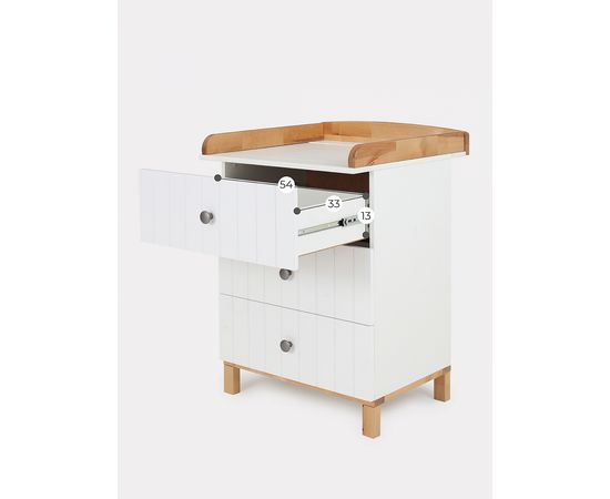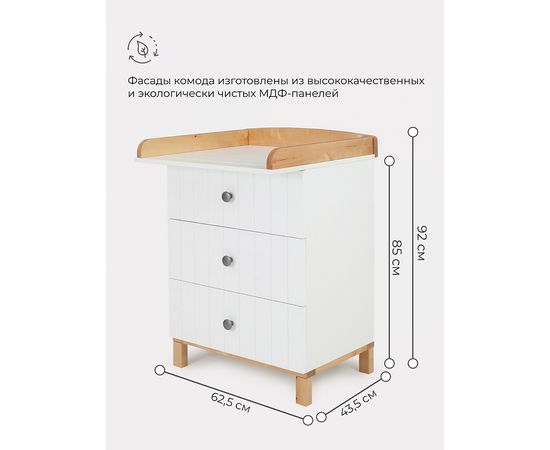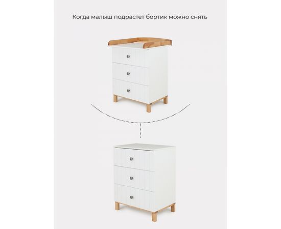 - Комодик имеет бортик, превращающий его в полноценный пеленальный столик. Когда малыш подрастёт, бортик можно будет снять