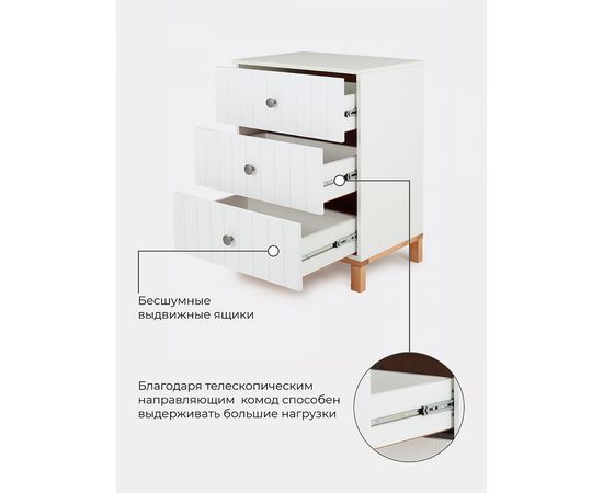 Комод RANT "BAMBOO". (Cloud White), 64см, 3 ящика