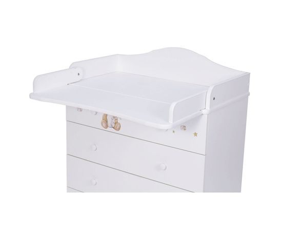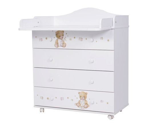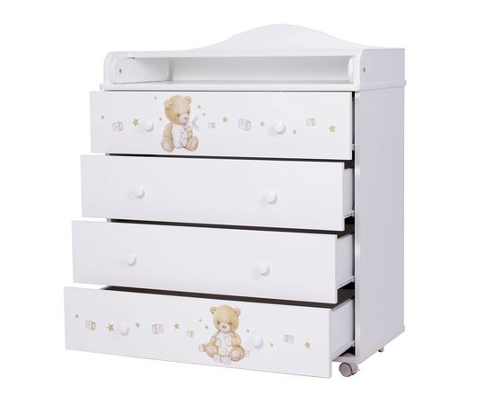 - Когда малыш подрастёт, крышку можно будет снять. Комод имеет четыре вместительных ящика для хранения детских вещей.