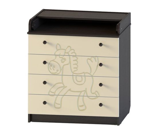 Комод для детской с откидным пеленальным столиком КР 80/4 ПВХ с рисунком ЛОШАДКА (фрезеровка) Венге/ваниль