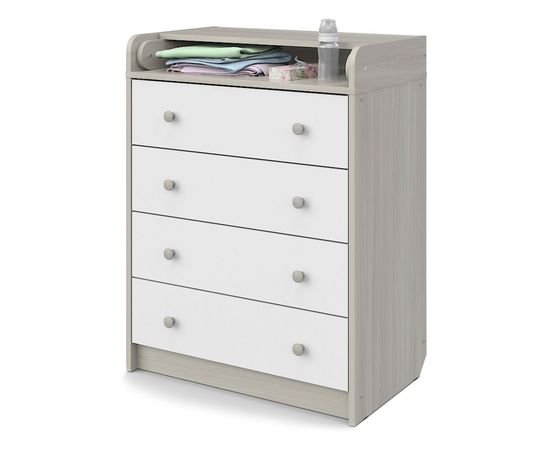 Атон Детский комод с пеленальным столиком 70/4 ЛДСП Кристалл 1 - оснащен 4 вместительными ящиками на роликовых направляющих. Изготавливается из ламинированной ДСП. Пеленальный столик с откидной крышкой не только помогает маме в переодевании ребенка, но при этом экономит пространство в помещении за счет удобного механизма складывания. Верхняя крышка комода раскладывается, что увеличивает площадь поверхности стола для пеленания. Фурнитура, применяемая для сборки комодов, обеспечивает долгую, надежную работу всех подвижных частей конструкции.