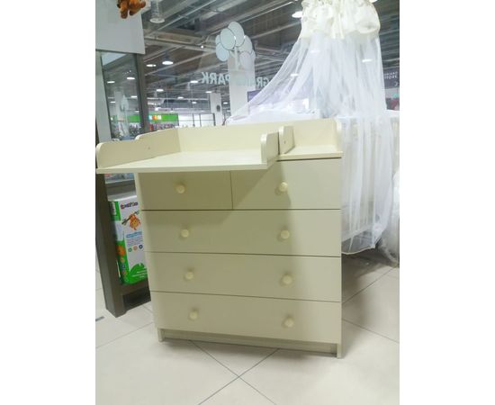 В данном комоде пять выдвижных ящика, поместятся все принадлежности для малыша, очень удобный пеленальный столик, он достаточно широкий и довольно просторный. Благодаря тому, что пеленальная доска занимает не все пространство комода, можно ставить все необходимые предметы для малыша рядом, что значительно облегчает процесс ухода за новорожденным, и не нужно все время ставить и убирать необходимые вещи. В одной части комода пеленатора будут стоять аксессуары для ухода, а другую часть, с откидывающейся доской, можно использовать для пеленания малыша, массажа и проведения других гигиенических процедур.