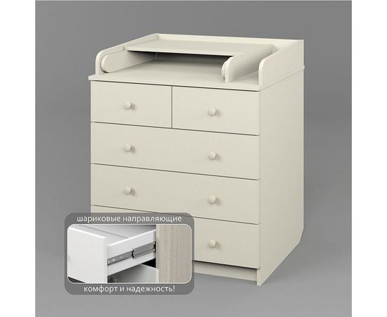 Главное преимущество детского комода СИРИУС-2 с пеленальным столиком от Атон Мебель – это отличные эксплуатационные свойства и высококачественная фурнитура. Шариковые направляющие на ящиках обеспечат полный комфорт от использования всего пространства комода. Благодаря специальной системе креплений ящики выдвигаются полностью и совершенно бесшумно. Кроме того, направляющие ящиков способны выдерживать достаточно большой вес в отличие от привычных роликовых.