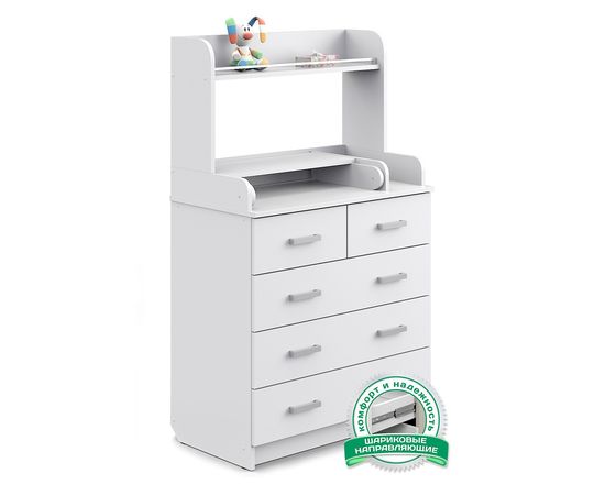 Ящики комода оборудованы шариковыми направляющими полного выдвижения, которые обеспечивают плавность и бесшумность хода, а также обладают увеличенным ресурсом пользования.