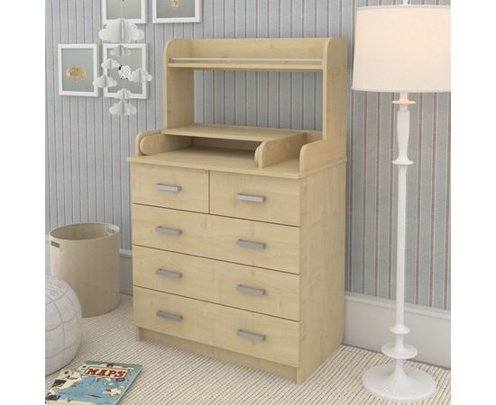Удобный пеленальный комод, оборудованный надстройкой с полкой. Ограничитель не позволит предметам скатиться с полки. Рядом с пеленальным столиком есть отделение для предметов по уходу за ребенком.