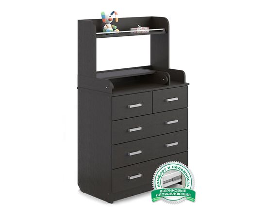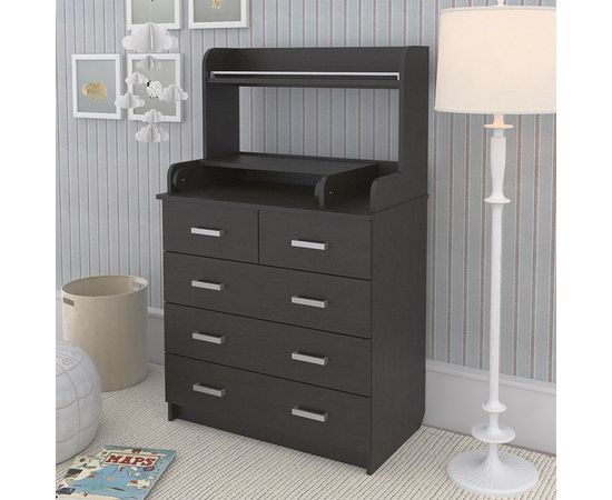 Удобный пеленальный комод, оборудованный надстройкой с полкой. Ограничитель не позволит предметам скатиться с полки. Рядом с пеленальным столиком есть отделение для предметов по уходу за ребенком.