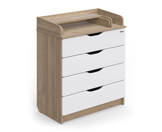 В данном комоде четыре выдвижных ящика, поместятся все принадлежности для малыша, очень удобный пеленальный столик, он достаточно широкий и довольно просторный. Благодаря тому, что пеленальная доска занимает не все пространство комода, можно ставить все необходимые предметы для малыша рядом, что значительно облегчает процесс ухода за новорожденным, и не нужно все время ставить и убирать необходимые вещи. В одной части комода пеленатора будут стоять аксессуары для ухода, а другую часть, с откидывающейся доской, можно использовать для пеленания малыша, массажа и проведения других гигиенических процедур.