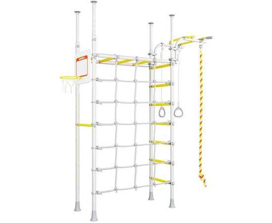 В комплекте: турник, рукоход, канат, кольца гимнастические, канатный лаз, кольцо баскетбольное со щитом, шведская стенка.