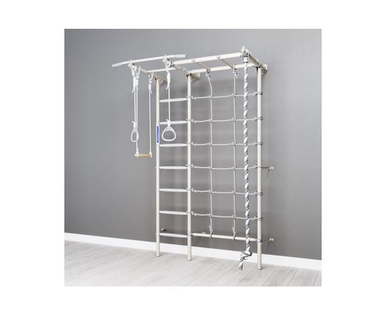 В комплекте кольца гимнастические, трапеция, канат, сетка для лазания.