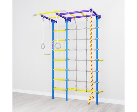В комплекте кольца гимнастические, трапеция, канат, сетка для лазания.