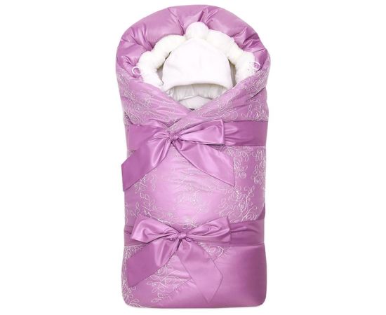 Комплект на выписку PRELEST (Прелесть) — тёплое нарядное одеяло с капюшоном и двумя бантами — завязками. Банты зафиксированы на одеяле, поэтому они не скользят, а всегда находятся в нужном месте.