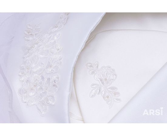 Комплект на выписку на лето ZHASMIN (Жасмин) — изысканный конверт из нежнейшего свадебного сатина, украшенный богатым кружевом. Цветы жасмина, вышитые на шикарном кружеве, переливаются жемчужинами и пайетками. Выписной наряд прекрасно подойдет для девочки и для мальчика.