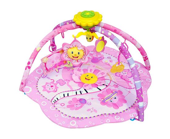 - В комплект коврика входят 2 игровые дуги с пятью разными подвесками и подушкой-дельфином;