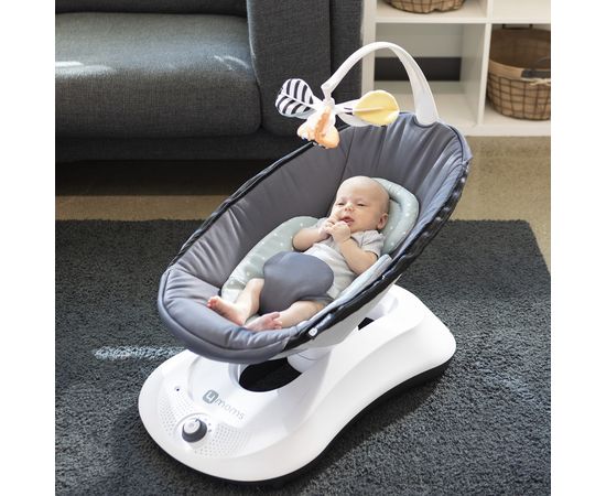 Кресло-качалка 4moms RockaRoo Gray Mesh с продуманной электроникой и максимальным уровнем защищенности и комфорта – новый взгляд на заботу о вашем ребенке. Товары для детей 4moms больше похожи на разработки космической отрасли, созданные в тесном сотрудничестве с врачами-педиатрами. 4moms RockaRoo перевернет представление о современных креслах-качалках на 180°. Форма, цвет, размер и высота подвески игрушек на дуге подобраны с учетом особенностей зрительного восприятия младенцев: черно-белая сторона игрушек предназначена для новорожденных, цветные поверхности — для малышей с месяца жизни до полугода.