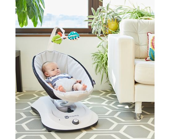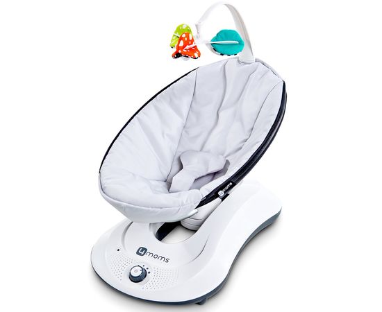 Кресло-качалка 4moms RockaRoo Серебристая с продуманной электроникой и максимальным уровнем защищенности и комфорта – новый взгляд на заботу о вашем ребенке. Товары для детей 4moms больше похожи на разработки космической отрасли, созданные в тесном сотрудничестве с врачами-педиатрами. 4moms RockaRoo перевернет представление о современных креслах-качалках на 180°. Форма, цвет, размер и высота подвески игрушек на дуге подобраны с учетом особенностей зрительного восприятия младенцев: черно-белая сторона игрушек предназначена для новорожденных, цветные поверхности — для малышей с месяца жизни до полугода.
