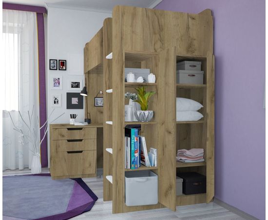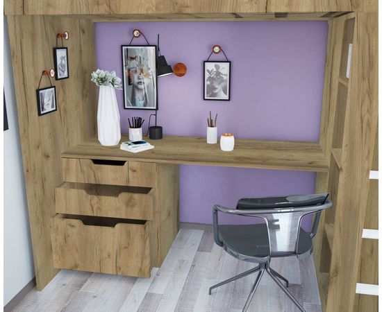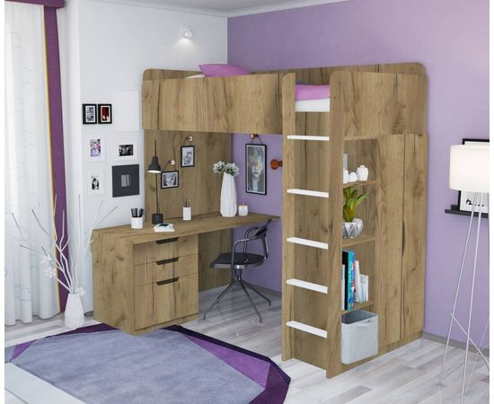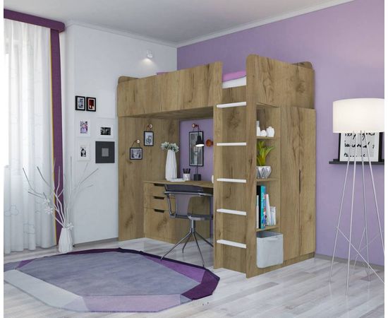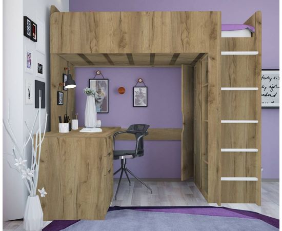 Кровать - чердак Polini Simple с письменным столом и шкафом дуб