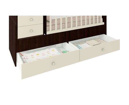 Комод включает в себя с 2 ящика на роликовых направляющих и открытую полочку. Полочка позволяет держать самые необходимые средства гигиены под рукой. Поверхность комода подходит для пеленания младенца. Специальные боковые бортики защитят ребенка от скатывания во время процедур. Пеленальную поверхность рекомендуется использовать от 0 до 12 месяцев., вес не более 11 кг. Ее можно дополнить мягким пеленальным матрасиком размером 38,4х63,6 см.. Когда ребенок подрастет, пеленальный комод послужит в качестве прикроватной тумбы, где можно хранить нужные мелочи.