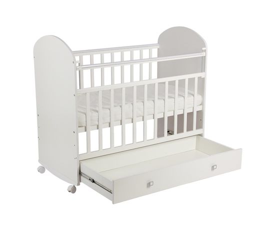 В основании предусмотрен вместительный выдвижной ящик на шариковых направляющих, в котором будет удобно хранить детские вещи, постельные принадлежности и игрушки. Максимальная нагрузка – 6 кг.