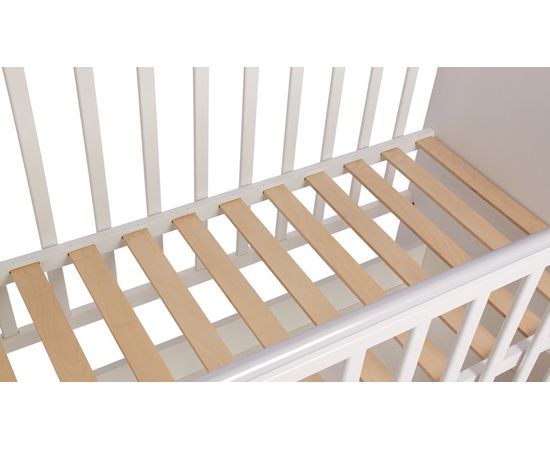 Реечное основание модели создает естественную вентиляцию матраса и обеспечивает правильное формирование позвоночника малыша. Ложе может быть установлено в 3-х положениях: