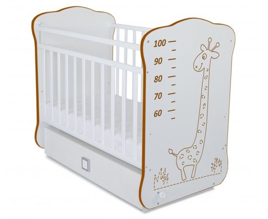 Кровать детская СКВ-4 с маятником и ящиком 411001-6 рисунок корич Жираф,белый