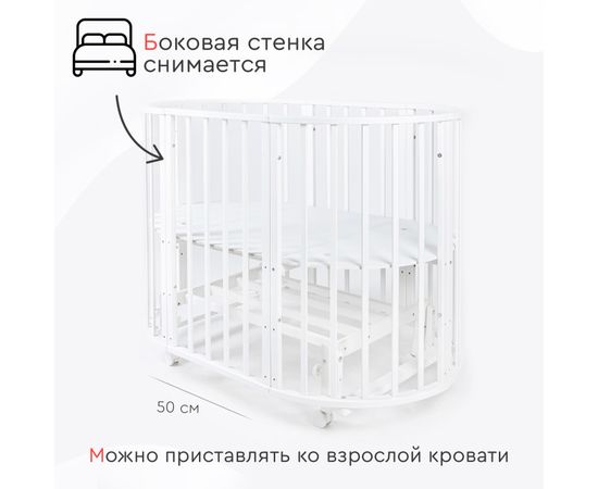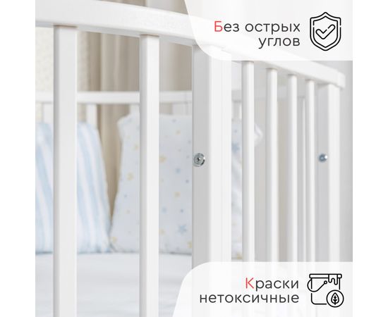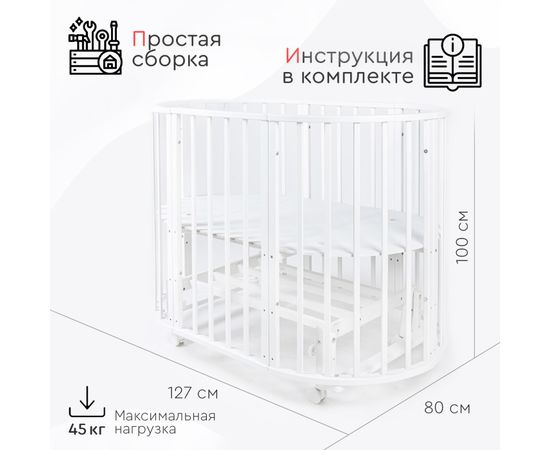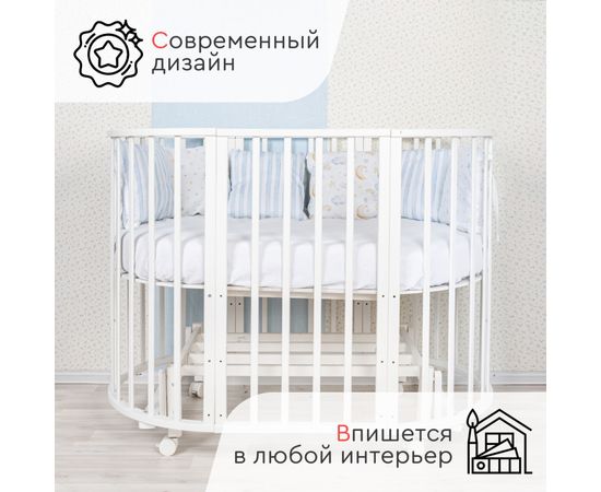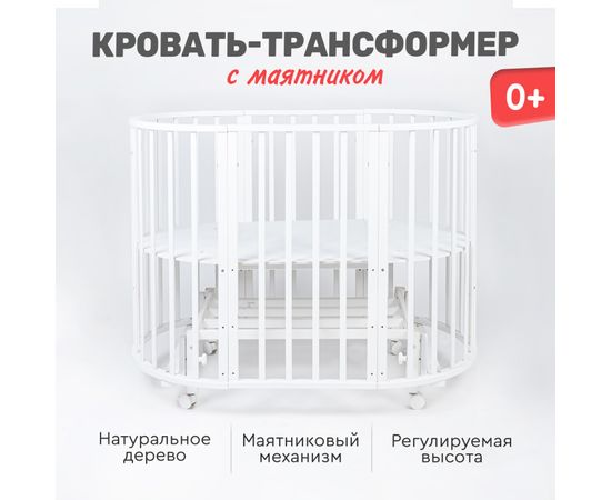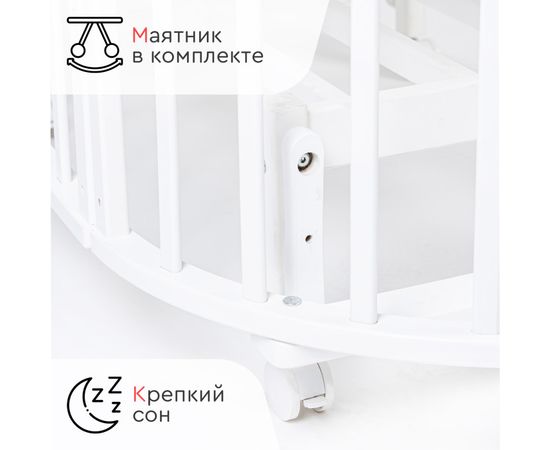 Маятник в комплекте! Экологичная овальная кроватка-трансформер выполнена из отборной древесины березы и прочного МДФ. Детская кровать покрыта нетоксичными гипоаллергенными лаками и красками на водной основе.