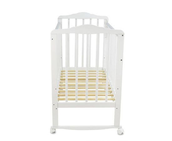 Передняя стенка опускается, чтобы родителям было удобно укладывать малыша. Днище кроватки регулируется в 2 положениях. Ложе кроватки ортопедическое, из ламелий, что позваляет воздуху свободно вентилировать матрас.