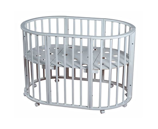 Круглая кровать - трансформер Мой малыш Николь 6 в 1 превращается в овальную кровать путем добавления боковых ограждений (спинок). Круглая форма кроватки будет напоминать новорожденному мамин животик, как по форме, так и по комфорту Круглая кровать открывает обзор на 360 градусов и может быть расположена по центру комнаты.
