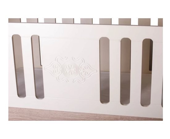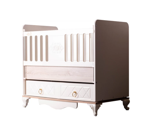 Изящная кроватка для младенцев «Miraj» — универсальный вариант, который подойдет многим семьям с младенцами. Она сделана из натурального массива , не имеет опасных углов и краев. Все поверхности идеально отшлифованы, покрыты безопасной краской на водной основе.