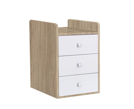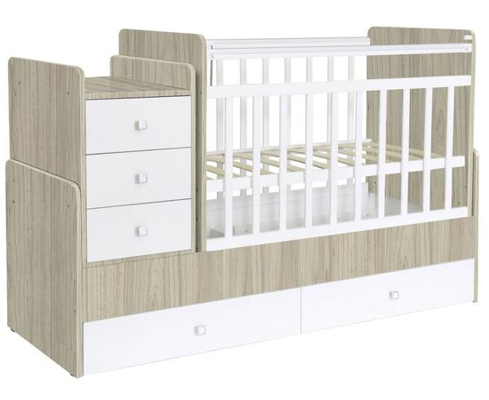 Комод с пеленальным столиком позволит хранить детские вещи и переодевать малыша. Борта кровати можно превратить в письменный столик, а пеленальное место в полку для книг.