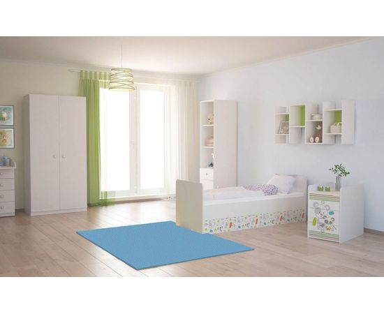 - ортопедическое основание, • включает в себя 2 положения ложа, • 5 вместительных выдвижных ящиков (2-больших ящика в кровати, 3- ящика в тумбе),