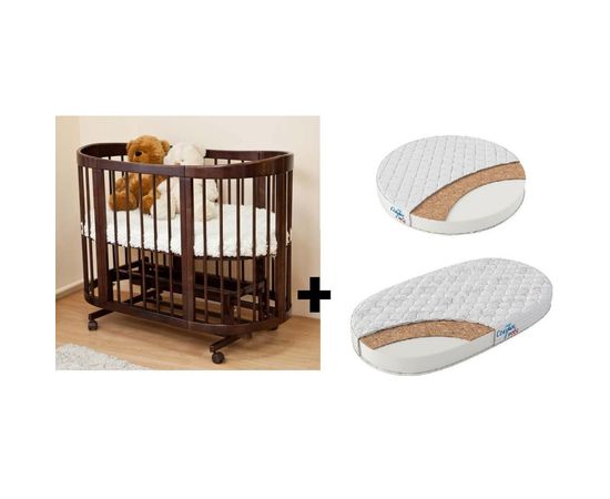 Овальная кроватка-трансформер 8 в 1 «Паулина» + набор матрасов