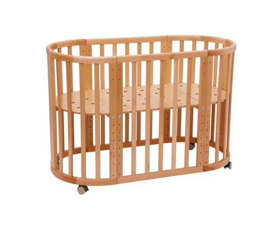 Кровать без острых углов имеет полукруглую форму, что оказывает положительное влияние на сон и эмоциональное состояние новорожденного.