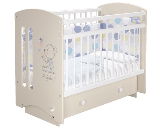 Детская кроватка Селеста 3 Умка Слоновая кость с симпатичным фото-рисунком на боковой спинке станет уютным местечком для вашего малыша и великолепным украшением детской комнаты.
