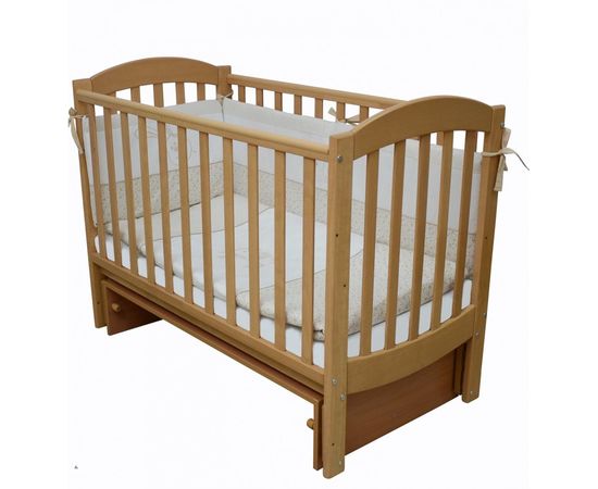 - Кроватка изготовлена из высококачественных твердых лиственных пород деревьев (карпатский бук);