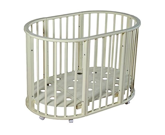 - Круглая кровать – трансформер превращается в овальную кровать путем добавления боковых ограждений (спинок).