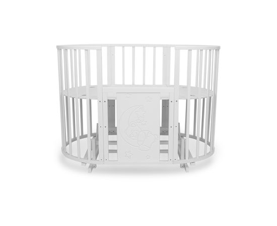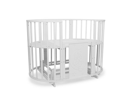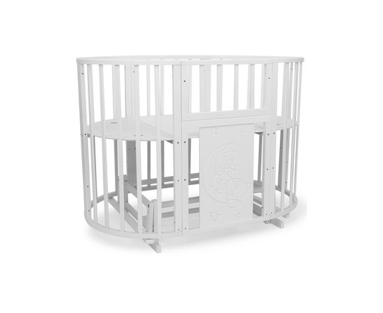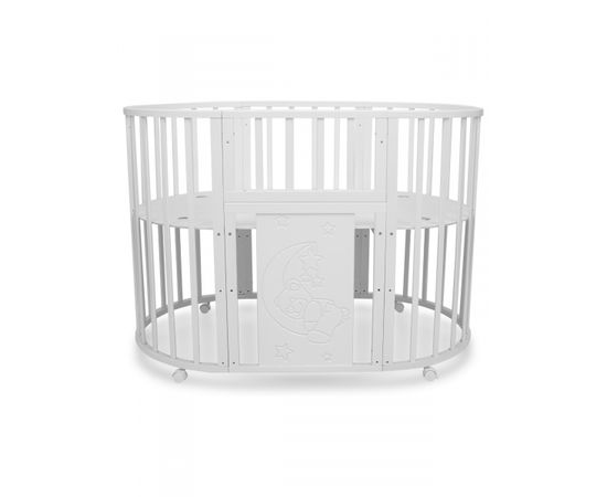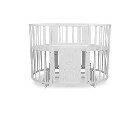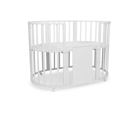 Кроватка - трансформер TOMIX "LUCKY LUX", (белый), с маятником, с МДФ вставкой «Мишка на луне», 8-в-1