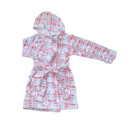 Халат махровый для девочки Kitty бело-розовый - тонкий, на поясочке, с капюшоном - отлично после ванны или бассейна.
