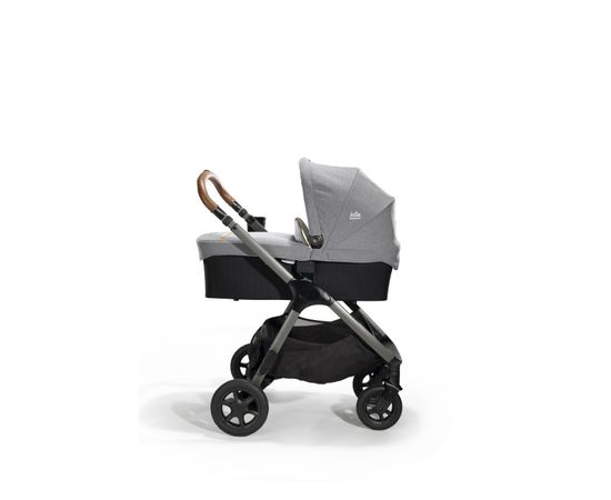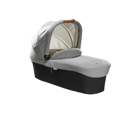 Капюшон открывается более чем на 90°, его обод является также удобной ручкой для переноски с мягкой рукояткой. В комплект входят специальные адаптеры для крепления к коляске. Обращает на себя внимание внешнее оформление: производители выбрали нестандартные для детского изделия серый и черный цвета. Возможно, именно в этом и кроется секрет популярности элегантной люльки для младенцев Joie Ramble.