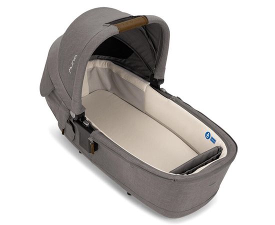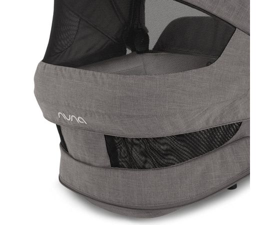Капюшон UPF 50+, легендарная драпировка Nuna Dream ™ и входящий в комплект чехол от дождя обеспечивают дополнительную защиту от непогоды и прекрасный, непрерывный сон. Сшитая вручную ручка для переноски из кожзаменителя позволяет легко отсоединить коляску от рамы.