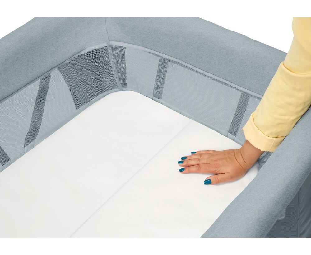 Дорожный манеж 3 в 1 оснащен уникальным двухуровневым матрасом, который расстегивается и идеально помещается в люльку, образуя меньший по размеру и более уютный матрас, идеально подходящий для новорожденных. По мере того, как ваш ребенок растет, матрас снова складывается, образуя более просторное и очень удобное пространство для игр или сна.