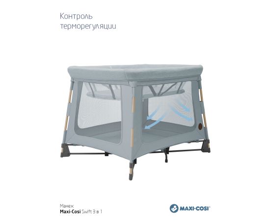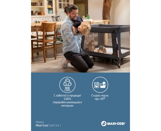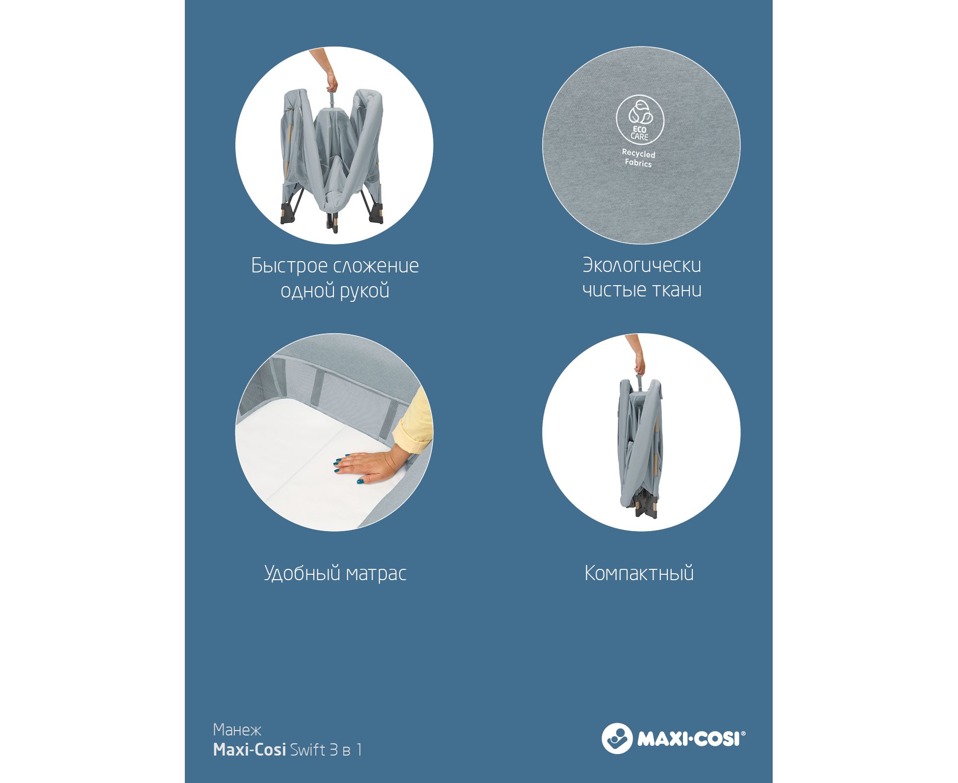 Maxi-Cosi Swift растет вместе с вашим ребенком от рождения до 3,5 лет. Чтобы не покупать три отдельных портативных продукта (люльку, детскую кроватку и игровой манеж), Swift представляет собой все три, стильно объединенные в одно целое.