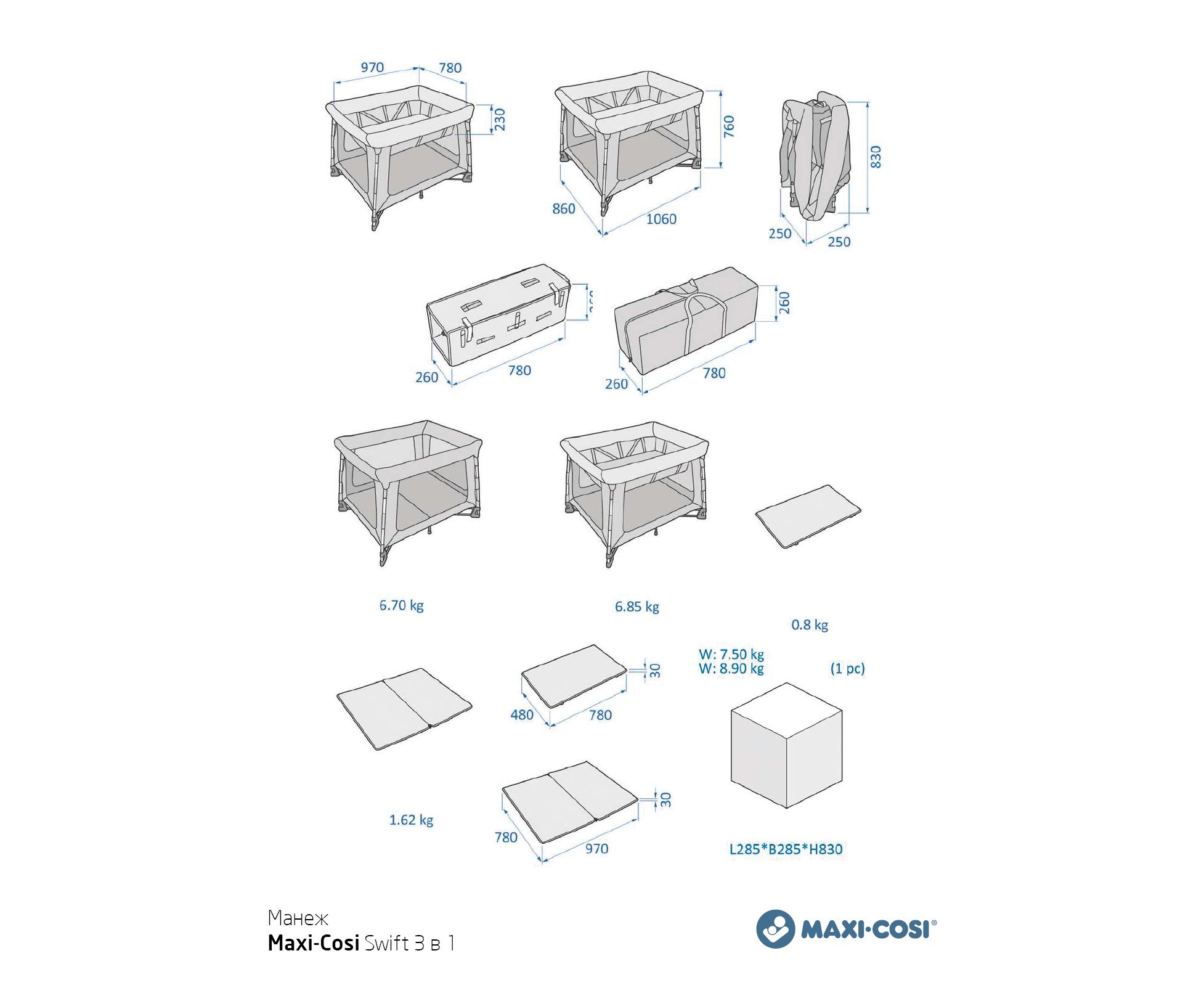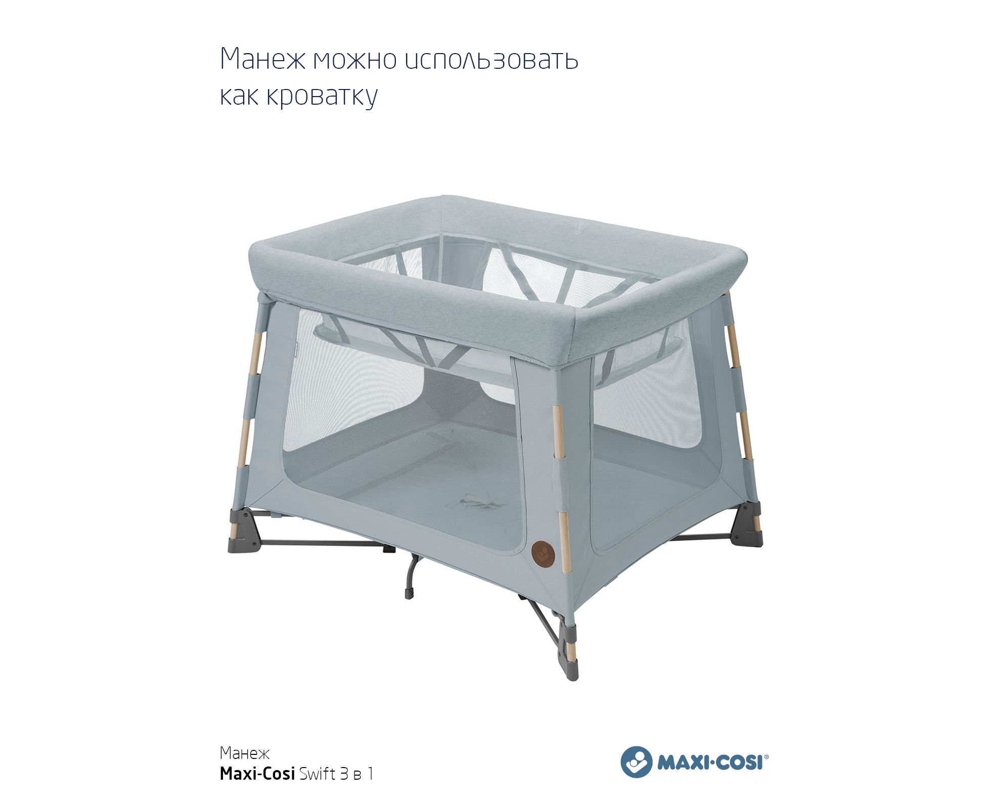 Maxi-Cosi Swift – универсальный стильный манеж 3 в 1, которую можно использовать как люльку для новорожденного, кроватку и прочный манеж для игр. Складывается за одну секунду.