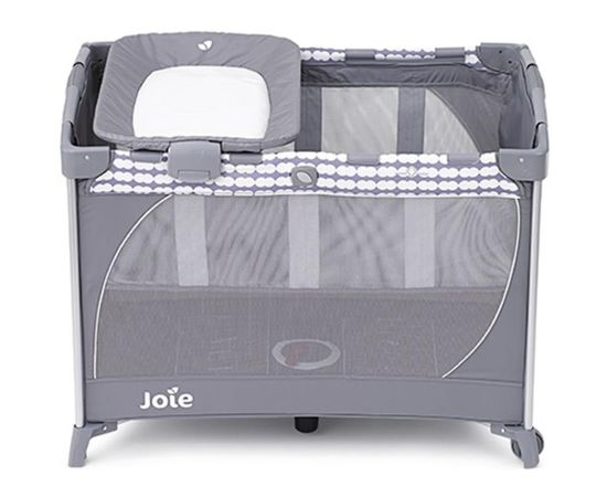 Сверху на нее может быть установлен специальный столик для пеленания, благодаря системе Joie SecureClick это не займет много времени. При необходимости кроватка легко может выполнять функции устойчивого игрового манежа.