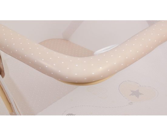 Ручки-кольца помогают ребенку,держась за них, с уверенностью вставать на ножки. Складная функция дает возможность переносить манеж в помещении,на природу, на дачу. Прочные стальные ножки не повредят поверхность пола,благодаря специальным накладкам.