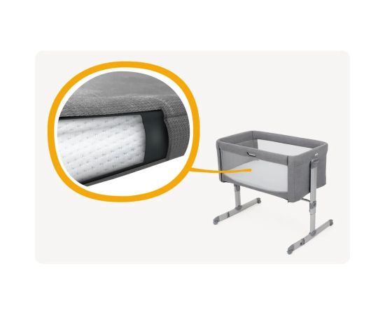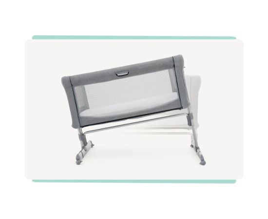 Когда придет время спать, надежно зафиксируйте прикроватную кроватку на месте с помощью скользящего замка одним нажатием.