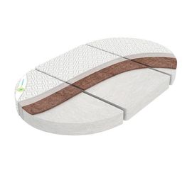 Набор матрасов в овальную кровать-трансформер Эстель, Паулина - круглый и овльный из ортофайбера. Круглый матрас используется только в люльке, для малышей до 6 месяцев. В этом возрасте малышу рекомендуют спать только на твердой поверхности, поэтому матрас с кокосом с одной стороны подойдет...