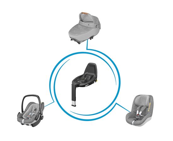 База Maxi-Cosi FamilyFix3 Совместима с моделями: Jade, Coral, Pebble Pro i-Size, Rock, Tinca, Pearl Smart и Pearl Pro 2 i-Size для более простой установки Click & Go. Maxi-Cosi FamilyFix3 подходит как для детских автолюлек (гр.0/0+), так и для детских автокресел для длительного использования (гр.1).